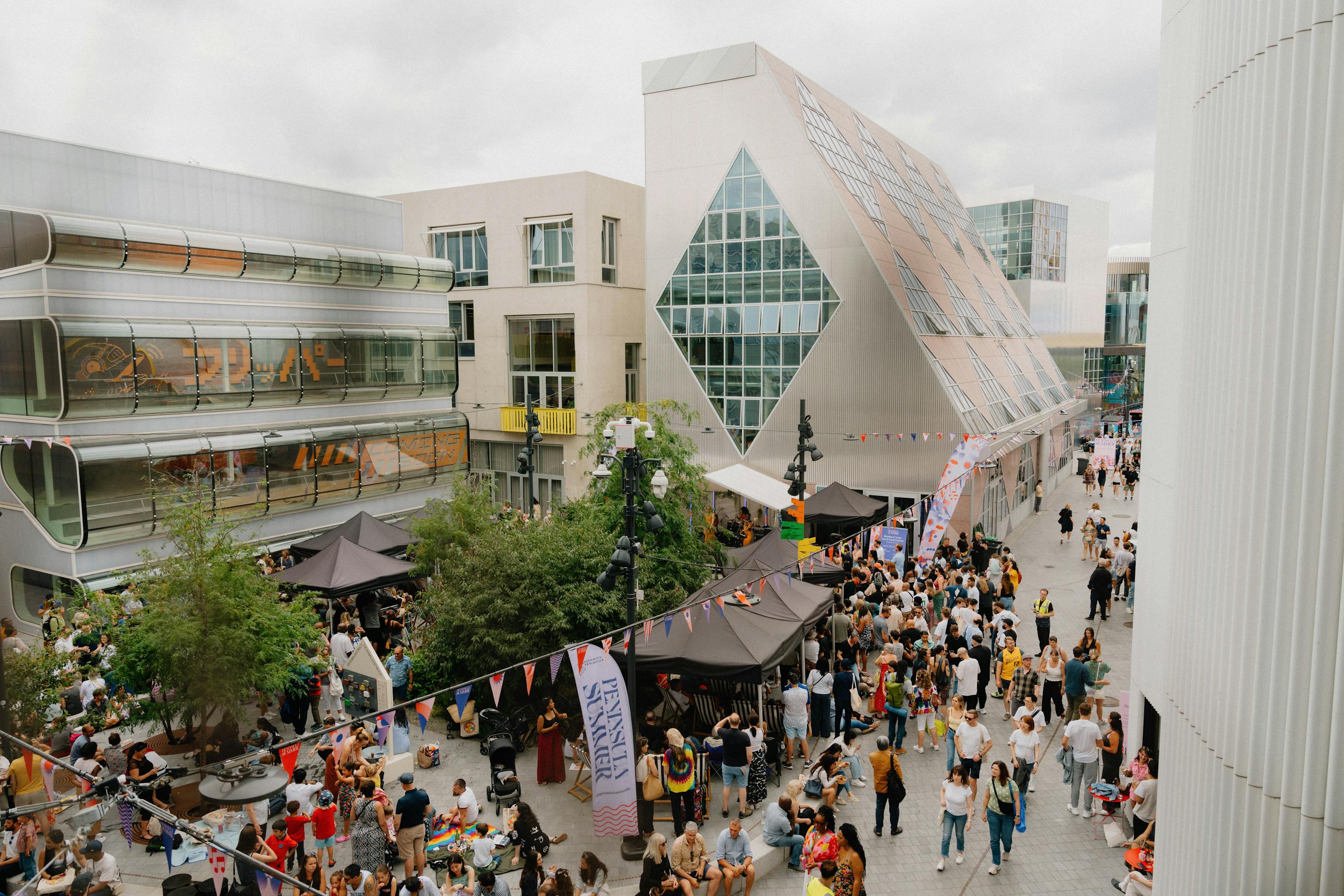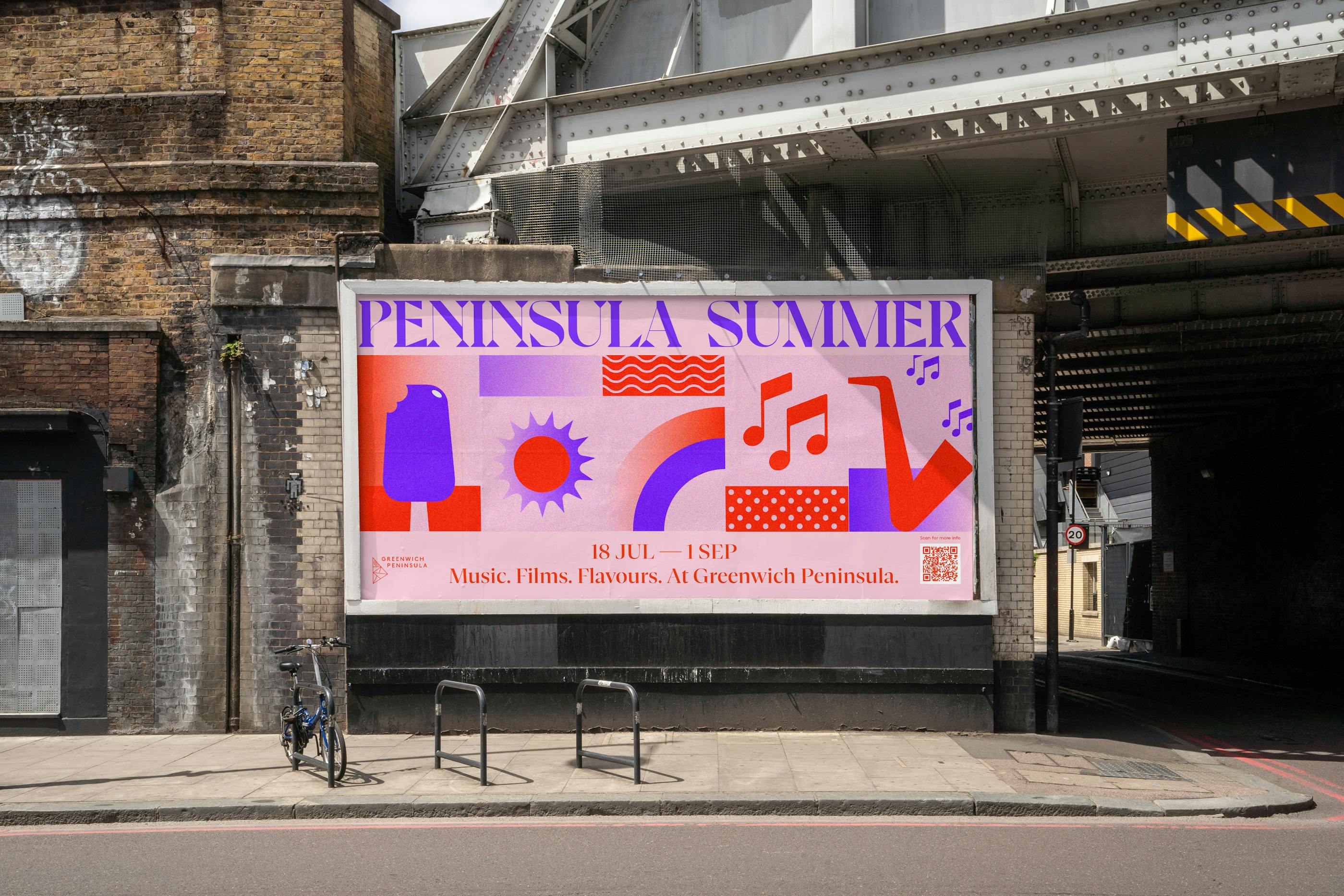 We developed the brand identity and full campaign rollout for Peninsula Summer—a vibrant celebration of culture, music, and food at Greenwich Peninsula. The project spans digital and film campaigns, press and out-of-home advertising, site-wide signage and application.